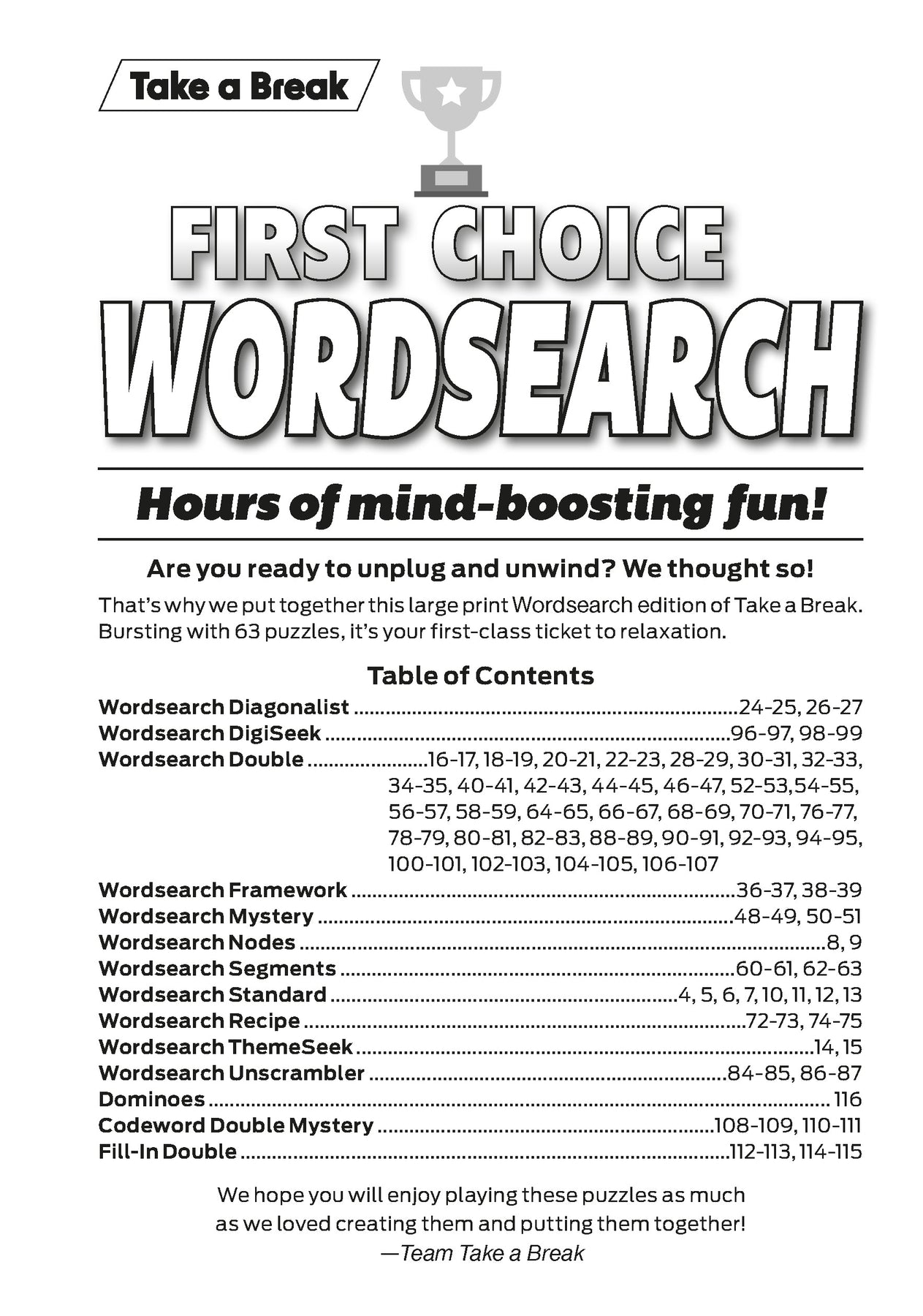 Take a Break with First Choice - Word Search! This new issue is packed with over 60 puzzles! The perfect word game fun for everyone!