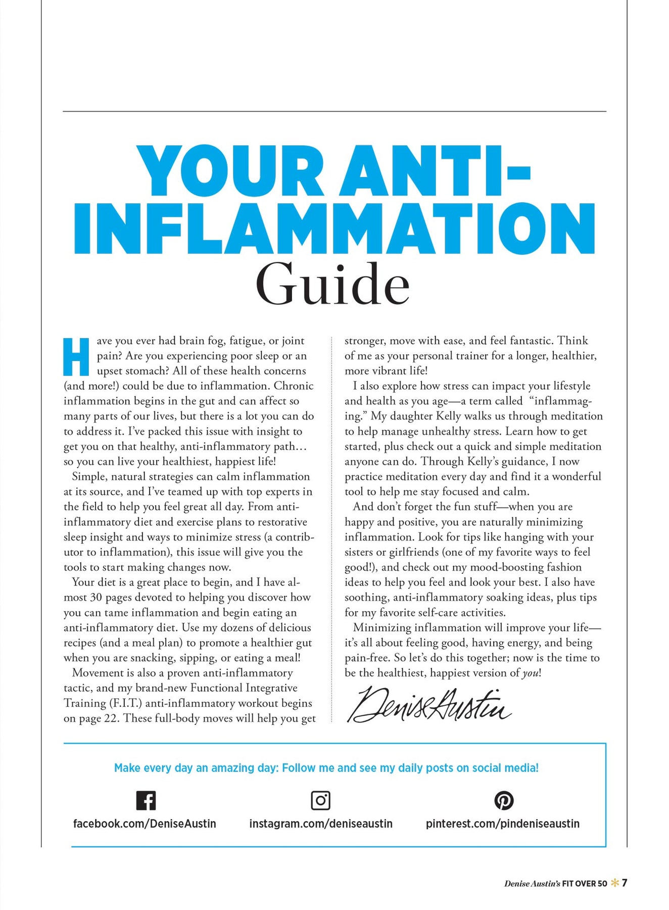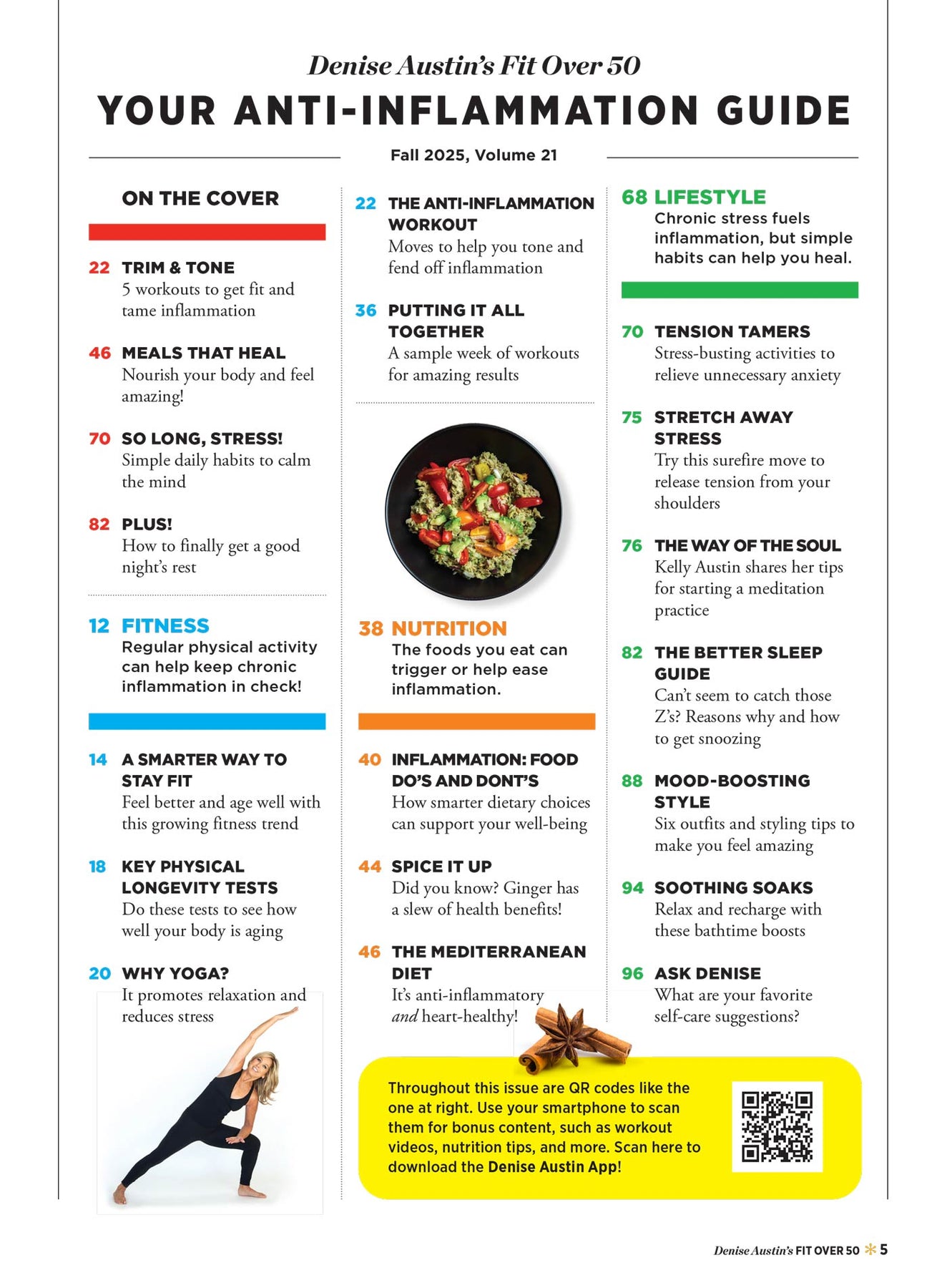 Discover the transformative power of wellness with the Denise Austin Fit Over 50: Fall Edition, your ultimate anti-inflammation guide. Packed with five invigorating workouts designed to trim and tone, this comprehensive resource also offers simple daily habits to calm the mind and manage stress, alongside healing meal plans and essential tips for better sleep. Elevate your health journey and embrace vitality with proven strategies tailored for the vibrant 50+ community!