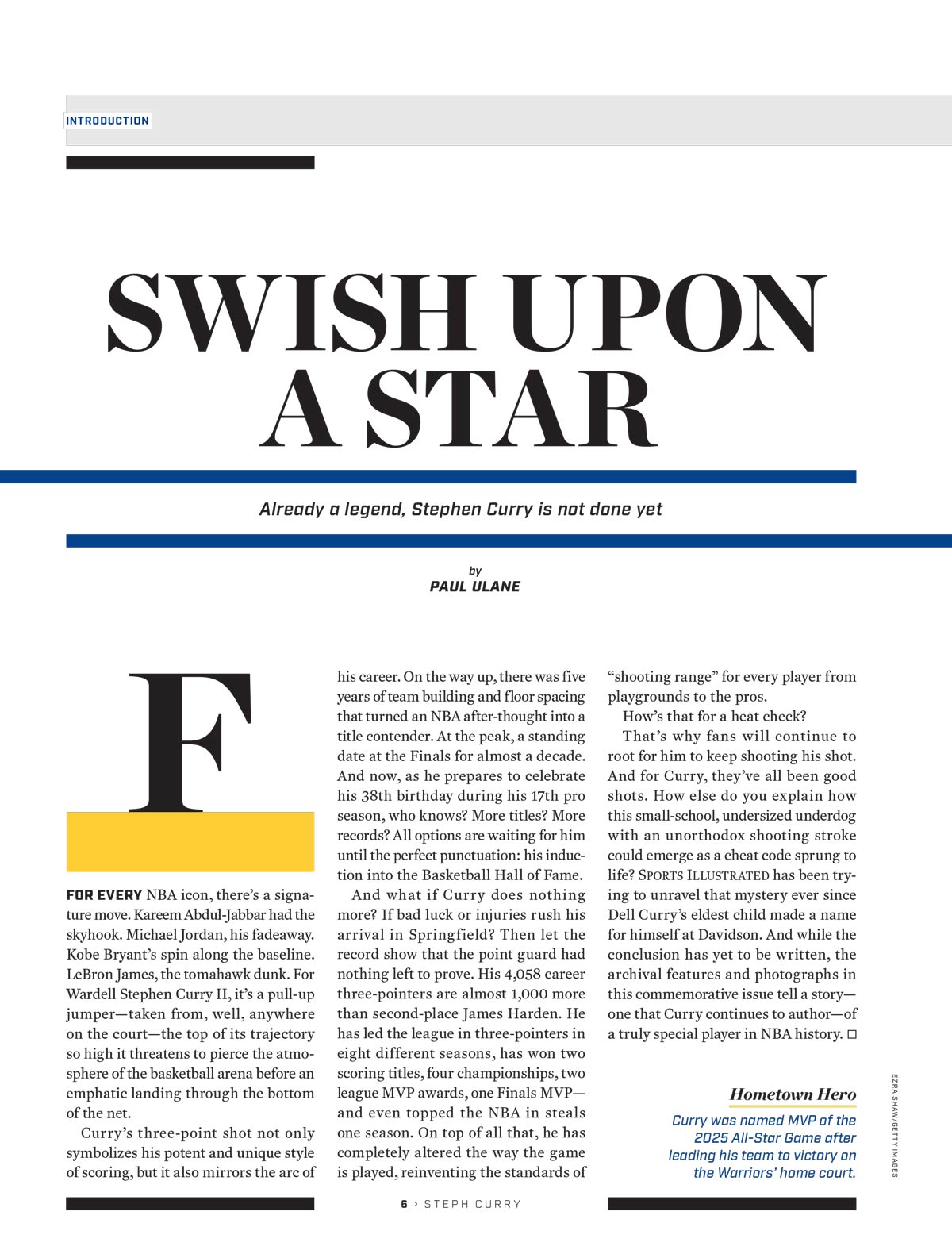 Dive into the world of Steph Curry with Sports Illustrated, your go-to magazine for everything about the Golden State Warriors superstar. Explore his inspiring journey from his early days to his rise as one of the NBA’s greatest legends. Take a closer look at the unforgettable moments that shaped his career, the impact he’s had on the game, and what the future holds for this remarkable athlete. Packed with in-depth stories and highlights, this edition is a must-read for anyone who wants to celebrate Steph Curry and his legacy with the Warriors.
