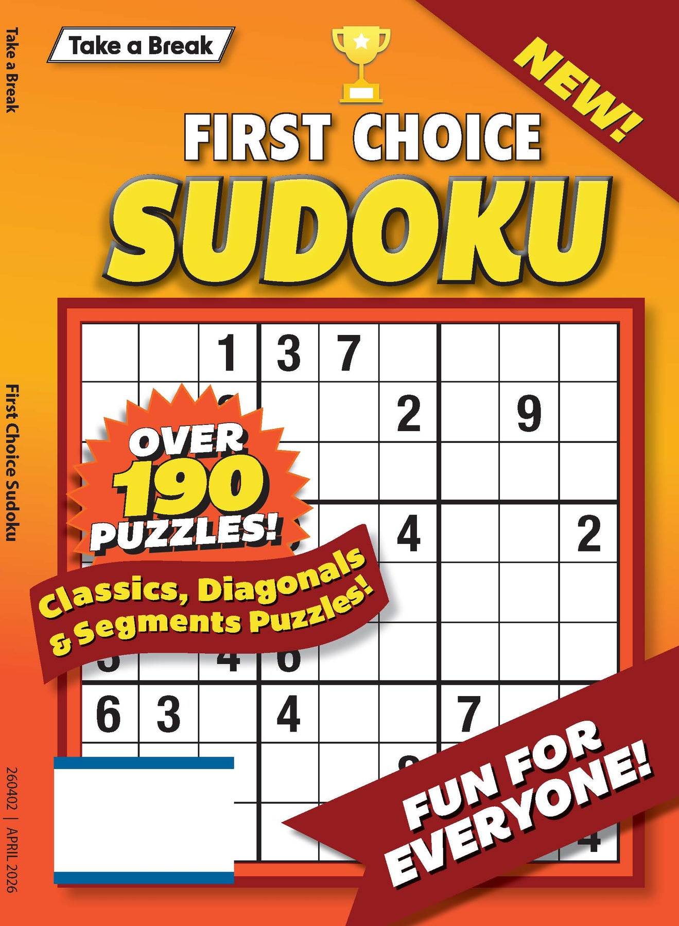Take a Break with First Choice - Sudoku! Hours of mind-boosting fun with this new issue! Bursting with over 190 puzzles with classic, diagonals & segments puzzles! It's fun for everyone!