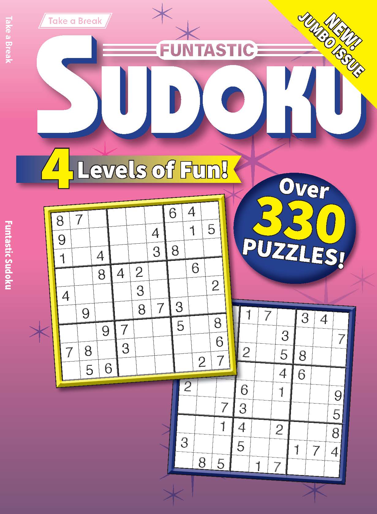 Take a Break with Funtastic Sudoku! Hours of mind-boosting fun in this exciting new jumbo issue! Bursting with over 330 puzzles with 4 levels of fun, it's your first-class ticket to unwind, unplug, and relax!