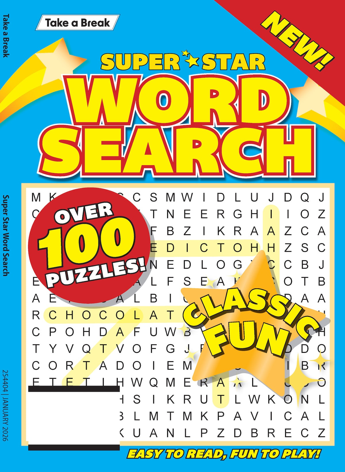 Take a Break with Super Star- Word Search! This new edition includes over 100 puzzles for classic fun! It's easy to read and fun to play!