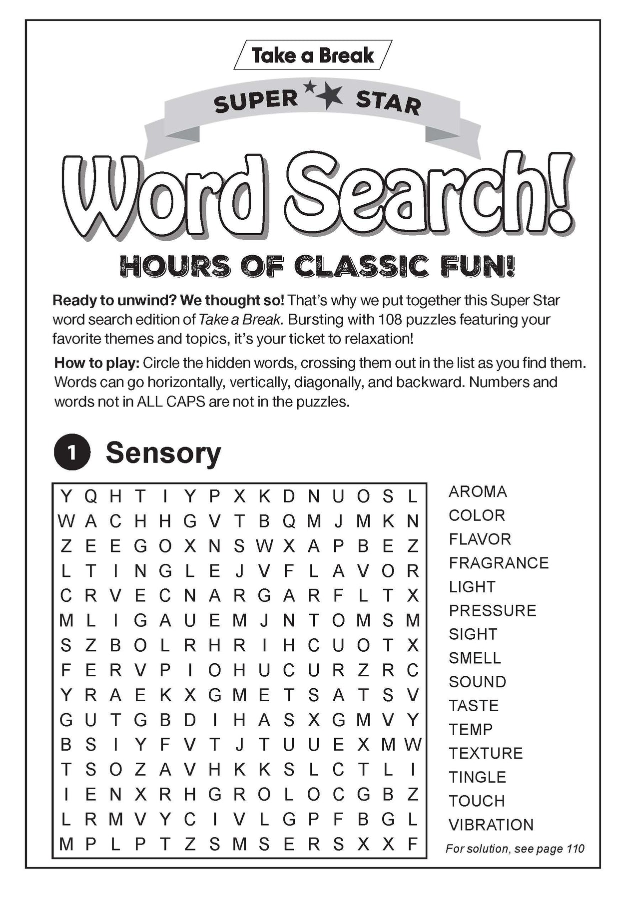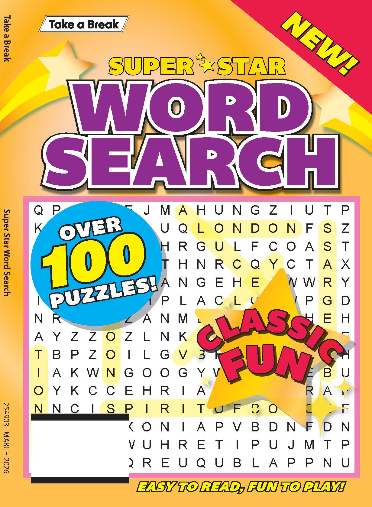 Take a Break with Super Star- Word Search! This new edition includes over 100 puzzles for classic fun! It's easy to read and fun to play!