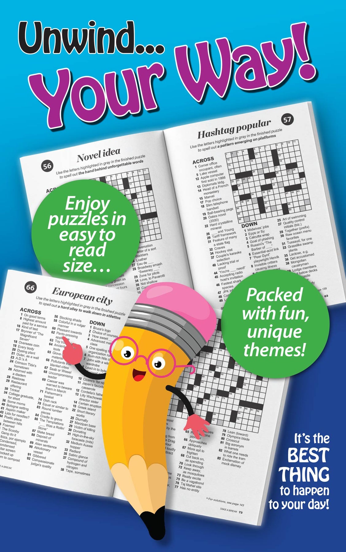 Take a Break with World's Best Puzzles- Cross Word! This new edition includes over 99 puzzles & mystery words! Enjoy hours of mind-boosting fun!
