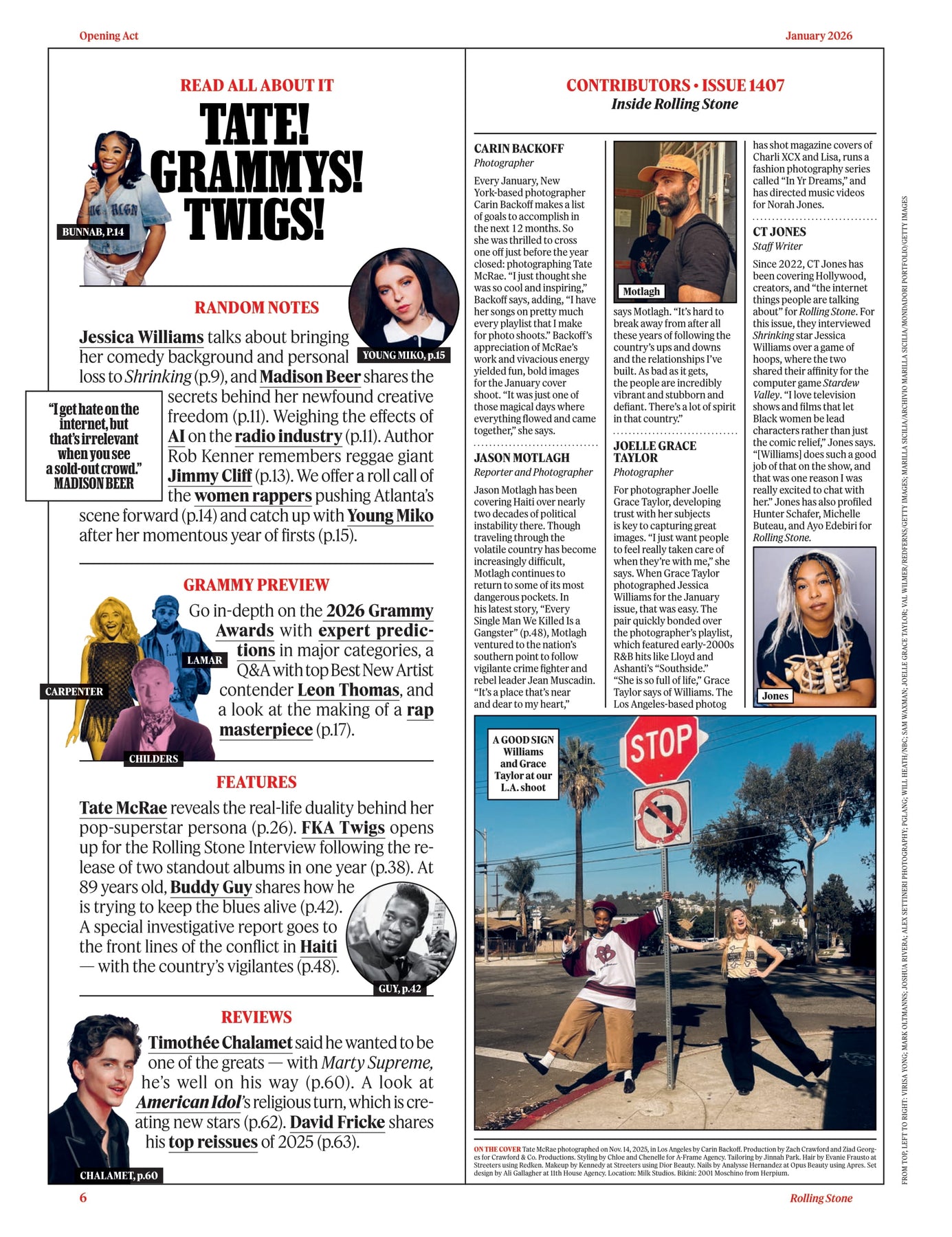 Rolling Stone - January 2026: Tate McRae, Confessions Of A Pop Star, Grammy Preview Special, FKA Twigs&