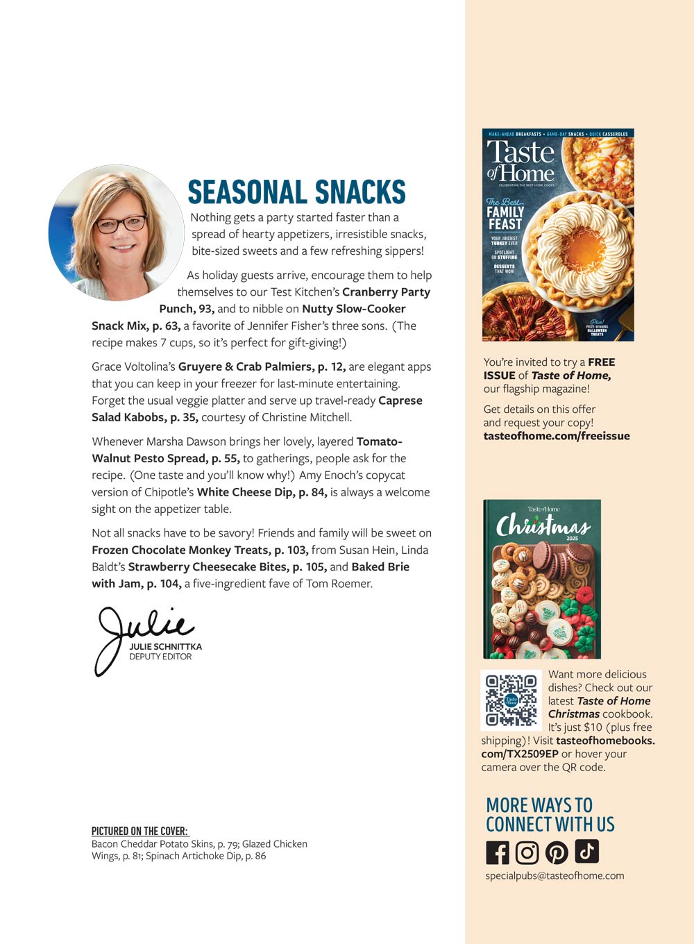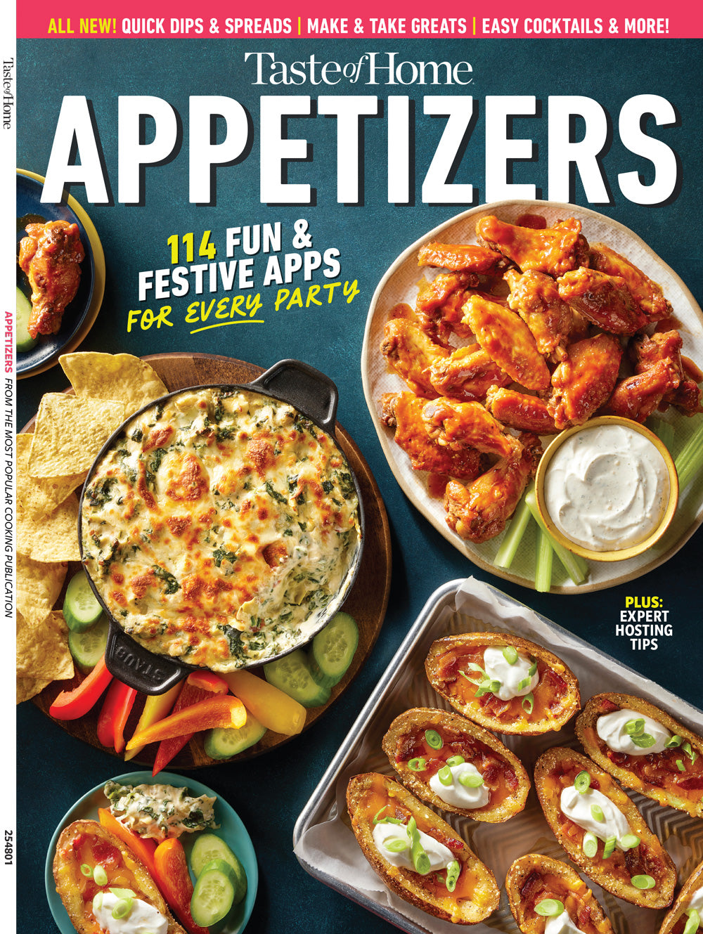 Discover the ultimate guide to entertaining with "Taste of Home: 114 Fun and Festive Appetizers for Every Party." This essential cookbook features a delightful array of new quick dips, spreads, and make-and-take recipes that are sure to impress your guests. Plus, you'll find easy cocktail recipes and invaluable hosting tips, making every occasion truly unforgettable!