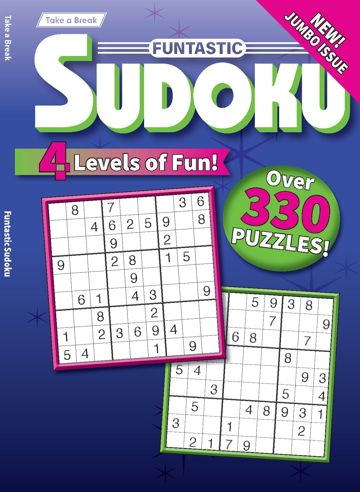 Take a Break with Funtastic Sudoku! Hours of mind-boosting fun in this exciting new jumbo issue! Bursting with over 330 puzzles with 4 levels of fun, it's your first-class ticket to unwind, unplug, and relax!