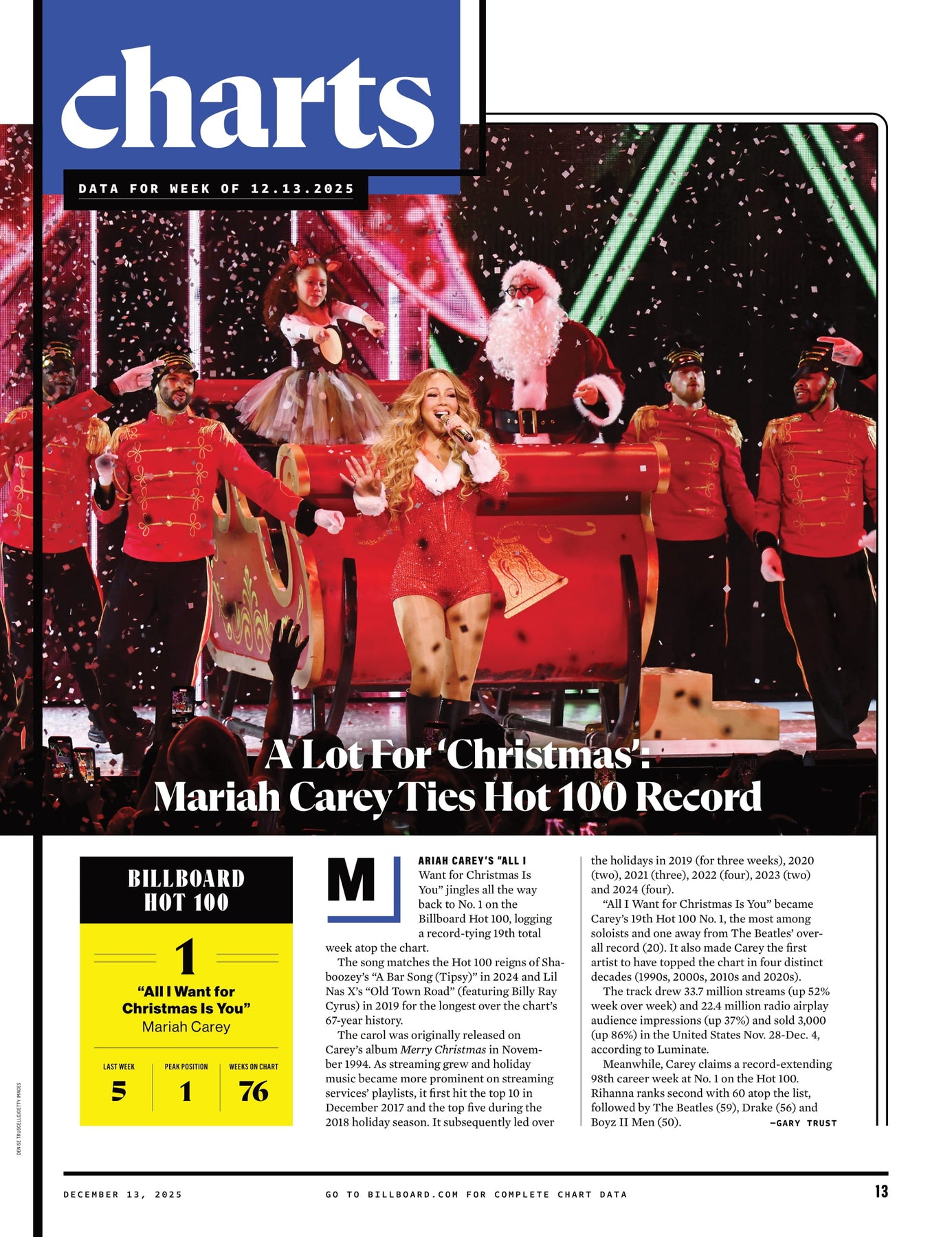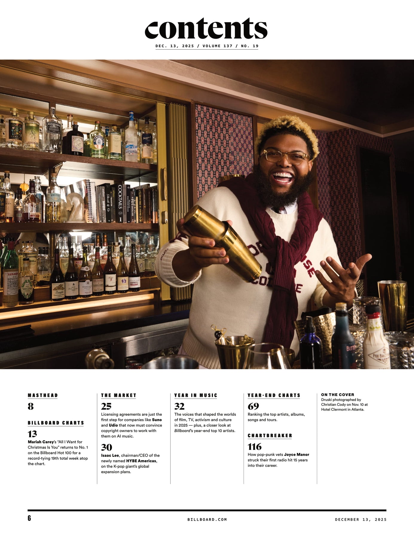 Billboard - 25.12.13 Edition: The No.1's Issue, How Druski Became The Internet’s Comedy King In Music, Rose & Bruno Mars Break Down 2025’s Biggest Global Hit, HYBE Americas, SOMBR, Mariah Carey & More