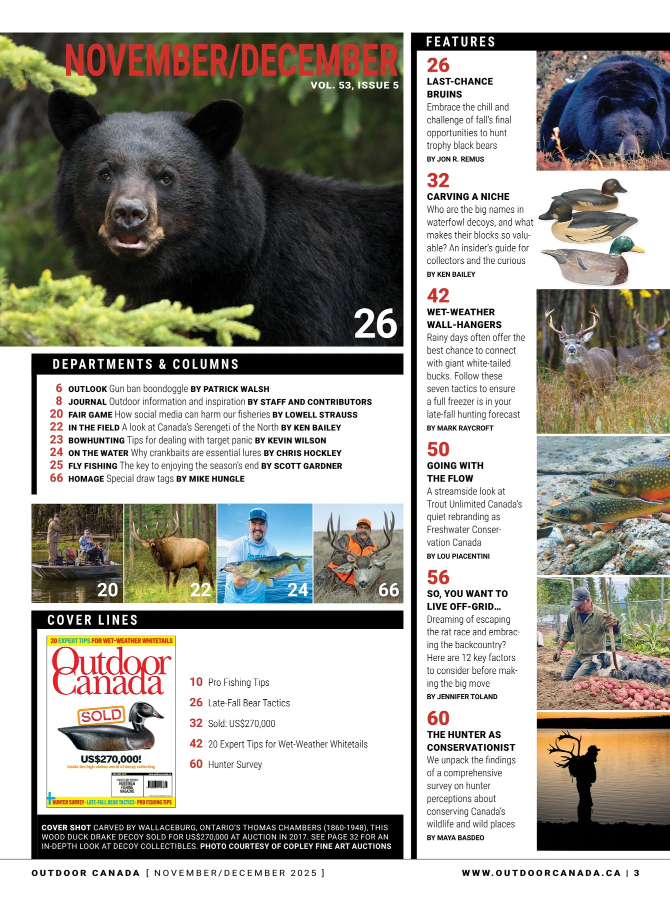 Outdoor Canada - Fall 2025: 20 Expert Tips For Wet-Weather Whitetails, The High-Stakes World Of Decoy Collecting, Pro Fishing Tips, Insights On Wildlife Preservation, Late-Fall Bear Tactics & More!