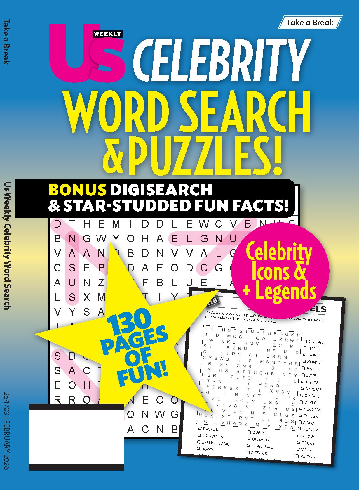 Take a Break with That's Entertainment - Word Search! This new issue is easy to read, fun to play, and is packed with 130 puzzles! The perfect way to relax and unwind!
