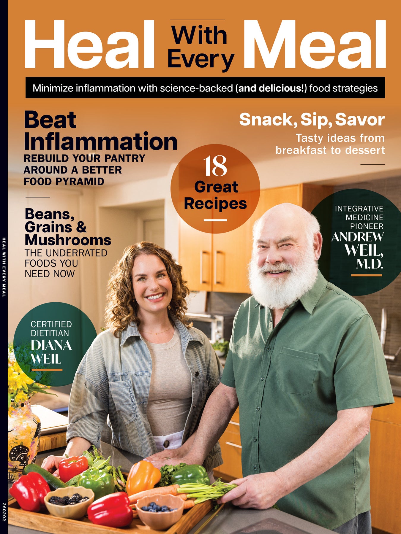 Did you put on a few pounds (or a few bad habits) over the holidays? Ready to rebuild your body from the inside out? Meet your essential guide to feeling better, thinking clearer, and aging well, one delicious meal at a time. Celebrated integrative medicine pioneer Dr. Andrew Weil and his certified-dietitian daughter Diana join forces to deliver science-backed advice, practical kitchen makeovers, and mouthwatering recipes in one beautiful guide. Whether you’re new to the virtues of anti-inflammatory eating or simply ready to level up your family's food game, this recipe-packed issue gives you all the tools you need to transform your kitchen, understand your body's signals, and rediscover the joy of food that loves you back.