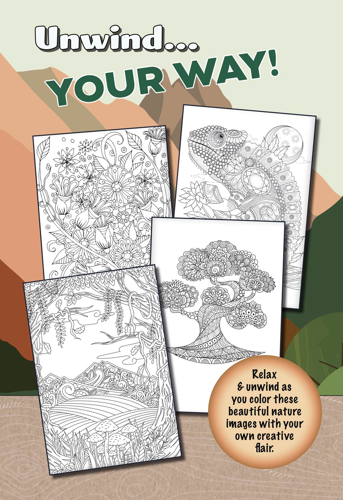 Discover Puzzle Harmony's Nature's Beauty Special coloring book! Our beautifully designed, nature-themed full-sized book is perfect for relaxing, unwinding, and de-stressing. Sit back and solve as you immerse yourself in the joy of coloring this season— your ultimate source for fun and relaxation awaits!