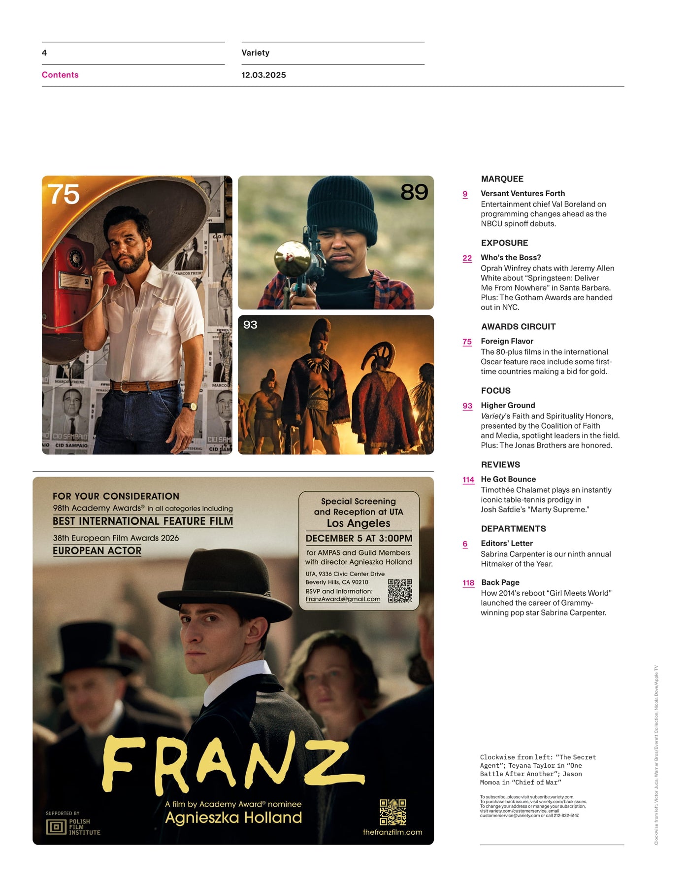Variety - 25.12.03: Sabrina Carpenter, Hitmaker Of The Year, From Girl Meets World Star To 2-Time Grammy Winner, International Oscar Films To Watch, NBCU Spinoff Debuts, The Gotham Awards & More!